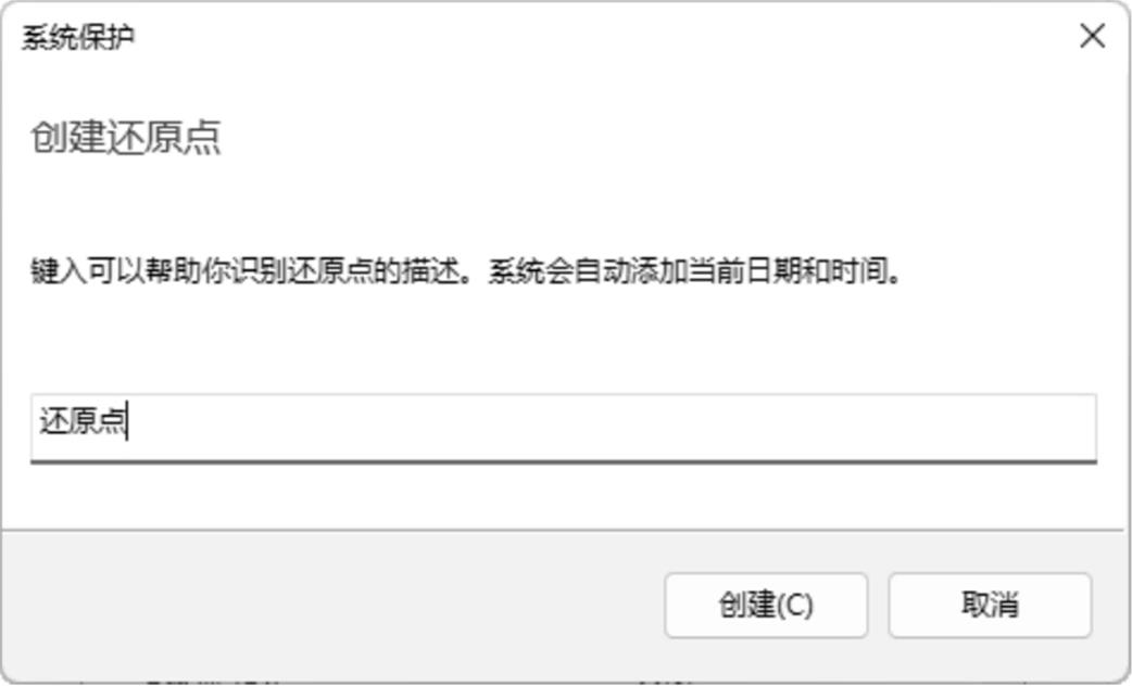 步骤 02 弹出“创建还原点”对话框,在文本框中输入还原点的描述性信息,如图3-26所示。