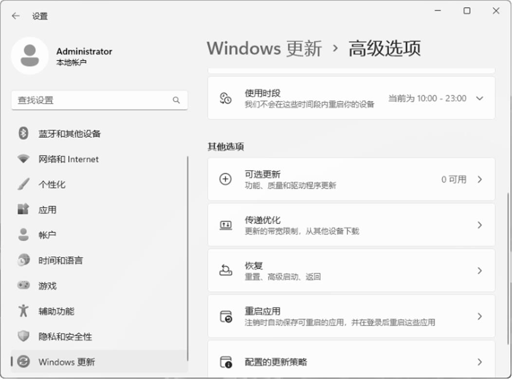 步骤 01 在桌面上右击“开始”按钮,在打开的快捷菜单中选择“设置”选项,弹出“设置”窗口,选择“Windows更新”→“高级选项”选项,如图3-39所示。