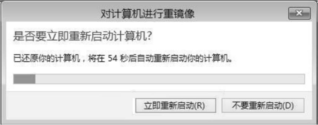 步骤 06 系统映像的还原操作完成后,弹出“是否要立即重新启动计算机?”对话框,单击“立即重新启动”按钮即可,如图3-44所示。