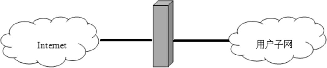 防火墙可以被安全放置在一个单独的路由器中,用来过滤不想要的信息包,也可以被安装在路由器和主机中,发挥更大的网络安全保护作用。简单说防火墙是位于可信网络与不可信网络之间并对二者之间流动的数据包进行检查的一台、多台电脑或路由器,如图1-5所示为简单的防火墙示意图。通常,可信网络指内部网,不可信网络指外部网,如Internet。