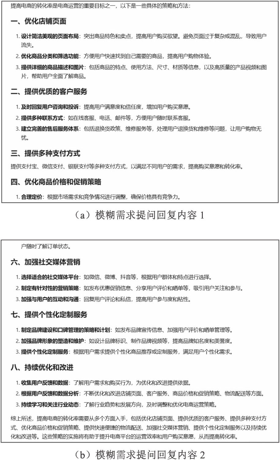 模糊需求提问方式:询问“如何提高电商的转化率?”