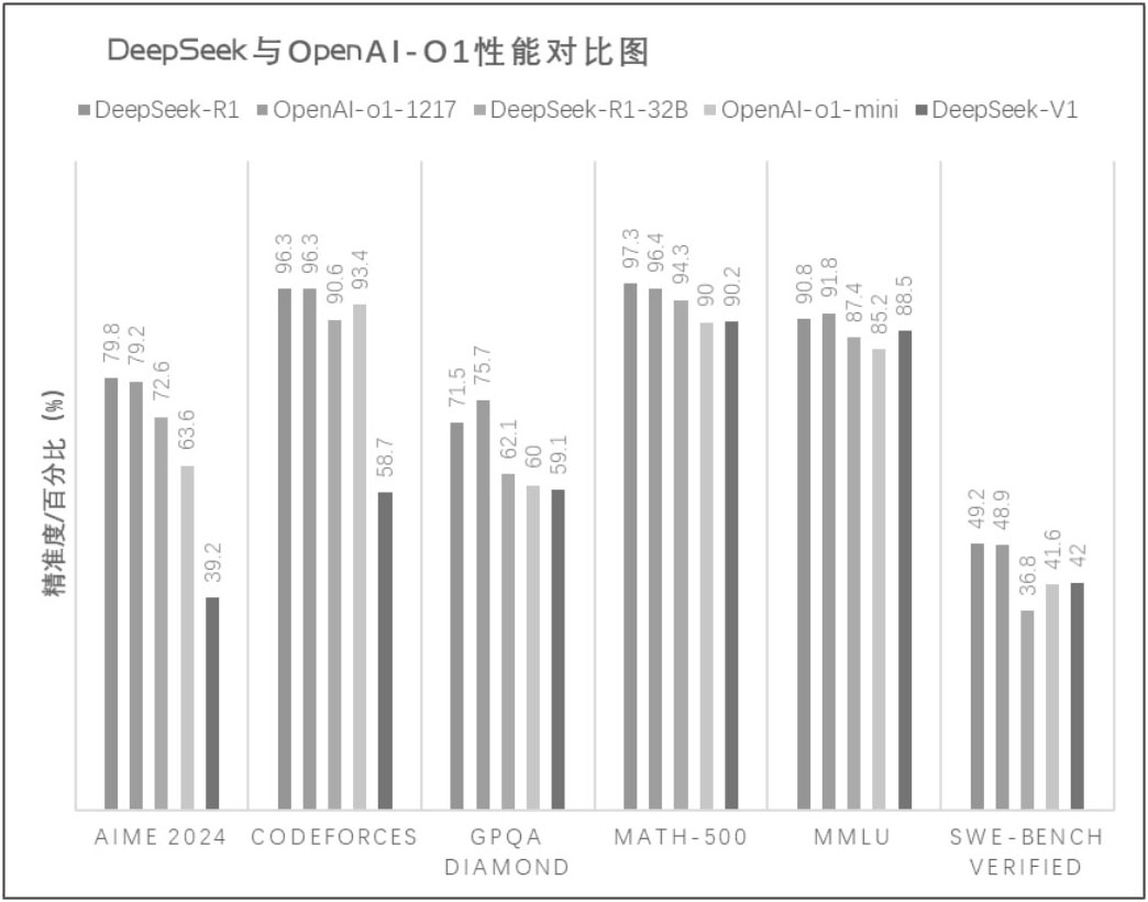 图1-1 DeepSeek与OpenAI-o1性能对比图