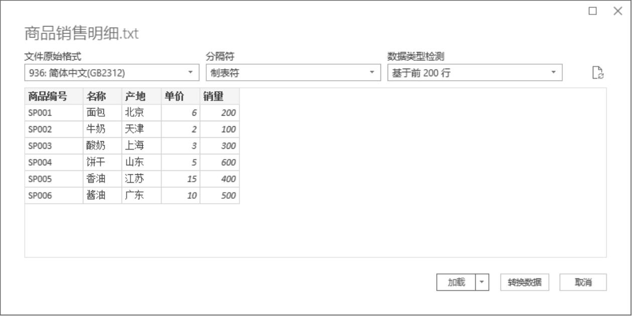 (3)打开如图2-30所示的对话框,Excel会自动检测文本文件中的数据格式,并自动选择合适的选项,并显示数据的预览视图。如果视图中的数据显示有误,则可以更改上方的选项。完成后单击“加载”按钮。