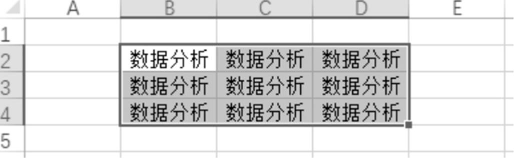 ●单击一个单元格,然后按住鼠标左键在工作表中拖动,到达另一个单元格时释放鼠标左键,将选中以这两个单元格为左上角和右下角的矩形范围内的所有单元格。