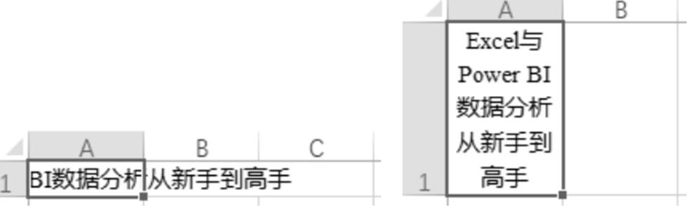 当在单元格中输入的内容超过单元格的宽度时,使用“自动换行”功能可以自动将超出宽度的内容移动到单元格中的下一行继续显示。如需使用“自动换行”功能,需要先选择一个或多个单元格,然后在功能区的“开始”选项卡中单击“自动换行”按钮。如图2-24所示为A1单元格中的内容自动换行前后的效果。