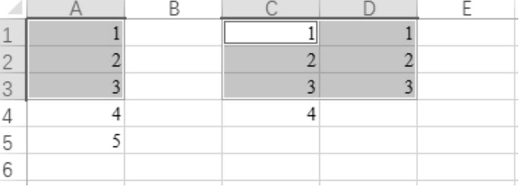 需要移动和复制的数据可以位于单元格或单元格区域中,只能移动连续单元格区域中的数据,复制的单元格区域可以是位于同行或同列的连续或不连续的单元格区域。如图2-39所示的两个选中的单元格区域可以执行复制操作,虽然它们的列数不同,但是它们都包含第1~3行。如图2-40所示的两个选中的单元格区域不能执行复制操作,因为第一个选区包含第1~3行,第二个选区只包含第1~2行。
