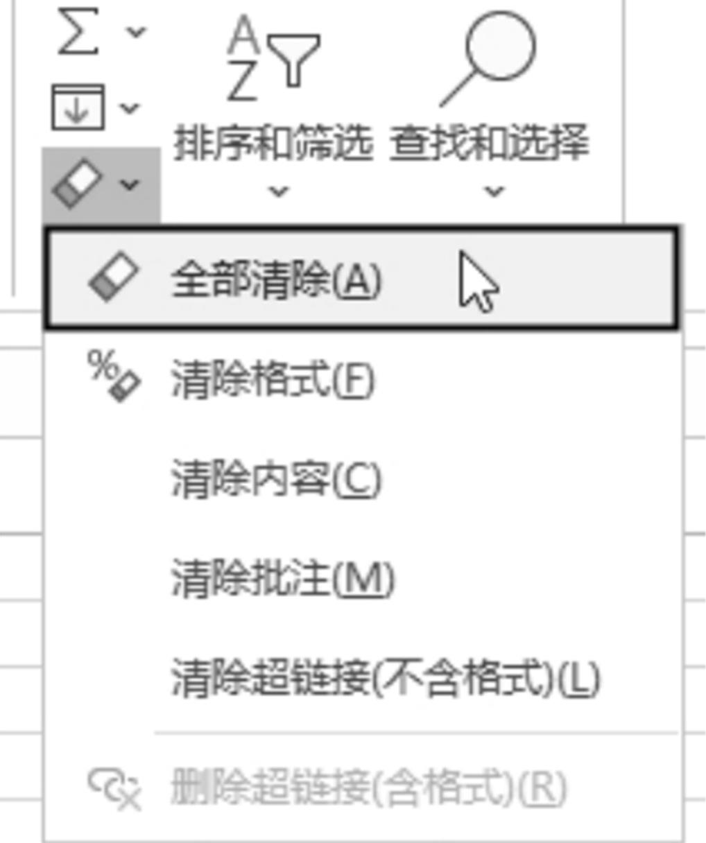 图2-38 使用“全部清除”命令同时删除内容和格式