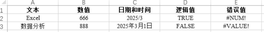 如图2-48所示是2.1.1小节介绍Excel数据类型的示例,借助“选择性粘贴”功能,可以快速将数据中的行变成列,将数据中的列变成行。