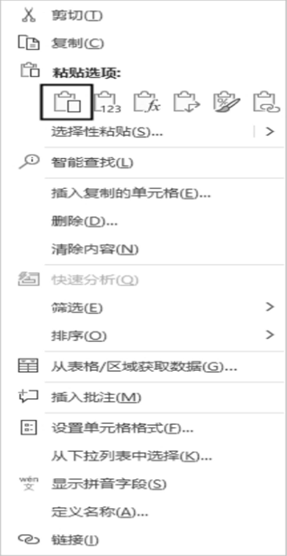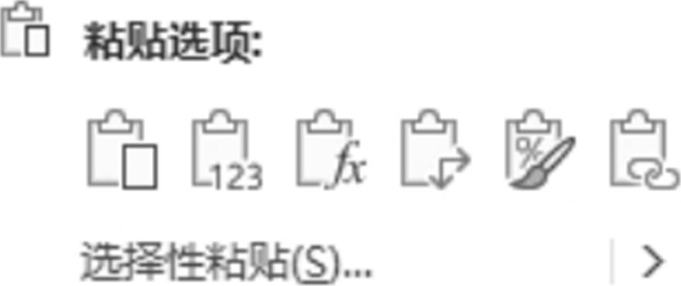 在2.2.2小节介绍移动和复制数据的方法时,其中一种方法是使用鼠标快捷菜单中的“粘贴选项”功能。除了其中的“粘贴”命令之外还有很多命令,使用它们可以实现不同的粘贴效果。