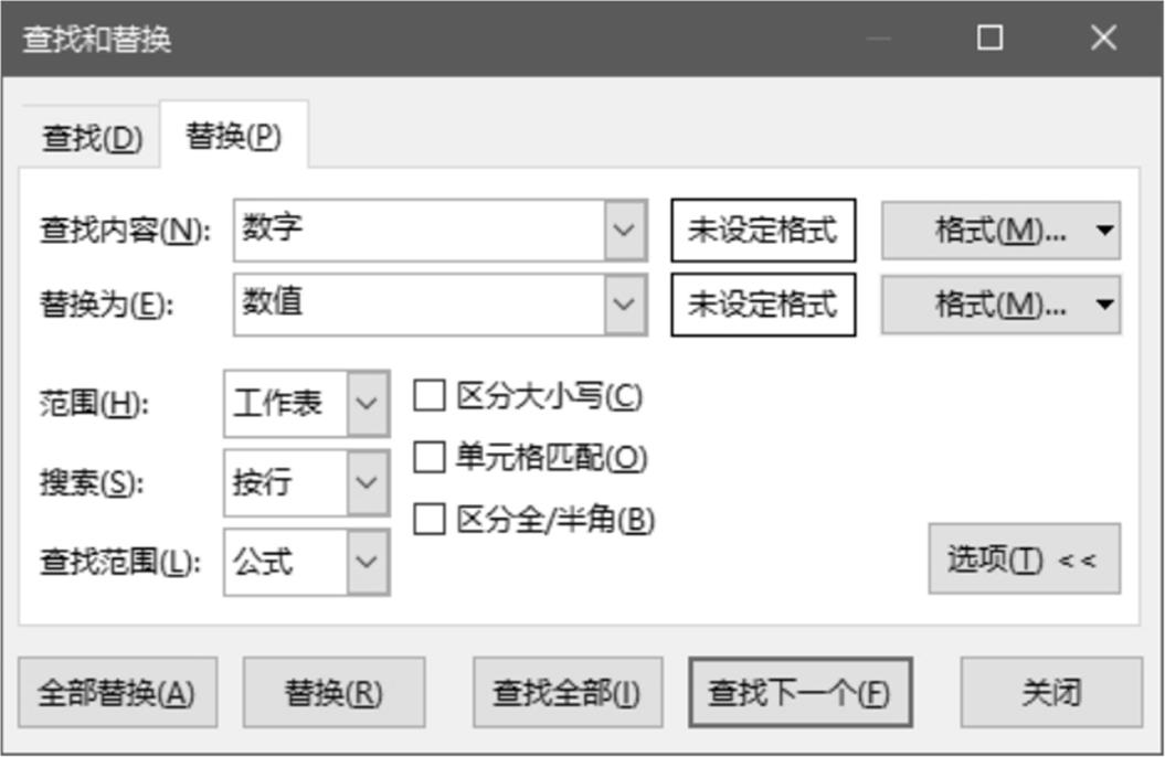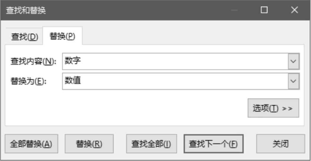 图2-36 “查找和替换”对话框中的“替换”选项卡