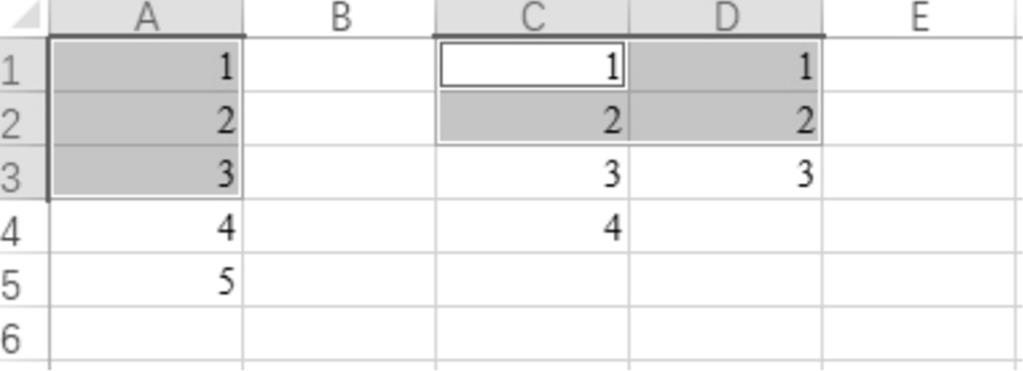 需要移动和复制的数据可以位于单元格或单元格区域中,只能移动连续单元格区域中的数据,复制的单元格区域可以是位于同行或同列的连续或不连续的单元格区域。如图2-39所示的两个选中的单元格区域可以执行复制操作,虽然它们的列数不同,但是它们都包含第1~3行。如图2-40所示的两个选中的单元格区域不能执行复制操作,因为第一个选区包含第1~3行,第二个选区只包含第1~2行。