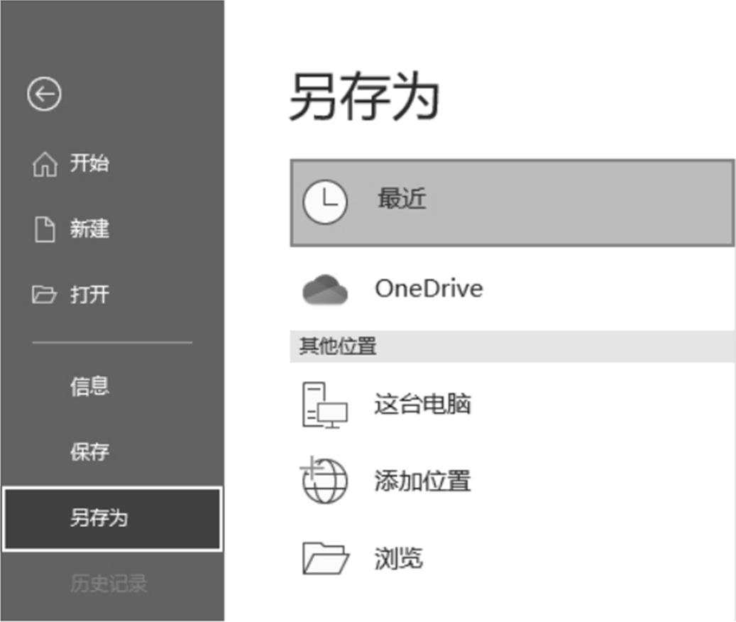 提示: 如果已将工作簿保存到计算机中,则在执行保存操作时,会将上次保存后的最新修改直接保存到当前工作簿中,而不会显示“另存为”界面和“另存为”对话框。