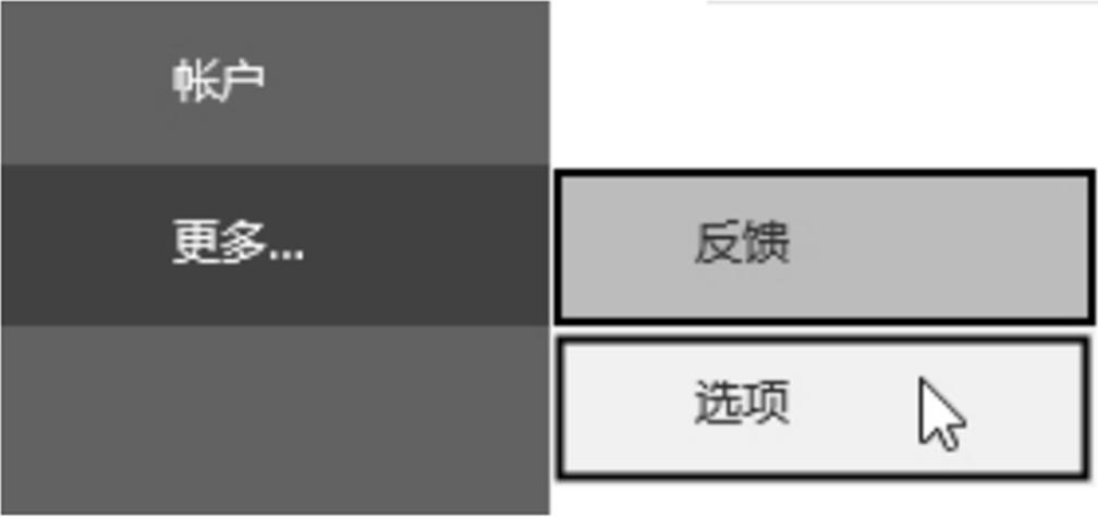 (1)单击“文件”按钮,然后选择“更多”→“选项”命令。