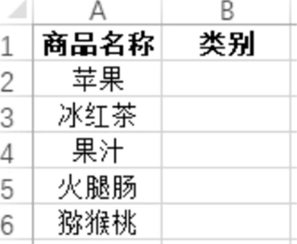 如图3-3所示,根据A列中的商品名称,在B列中输入正确的商品类别(“饮料”“果蔬”和“熟食”)。为了避免输入无效的商品类别,需要为B列设置数据验证规则。