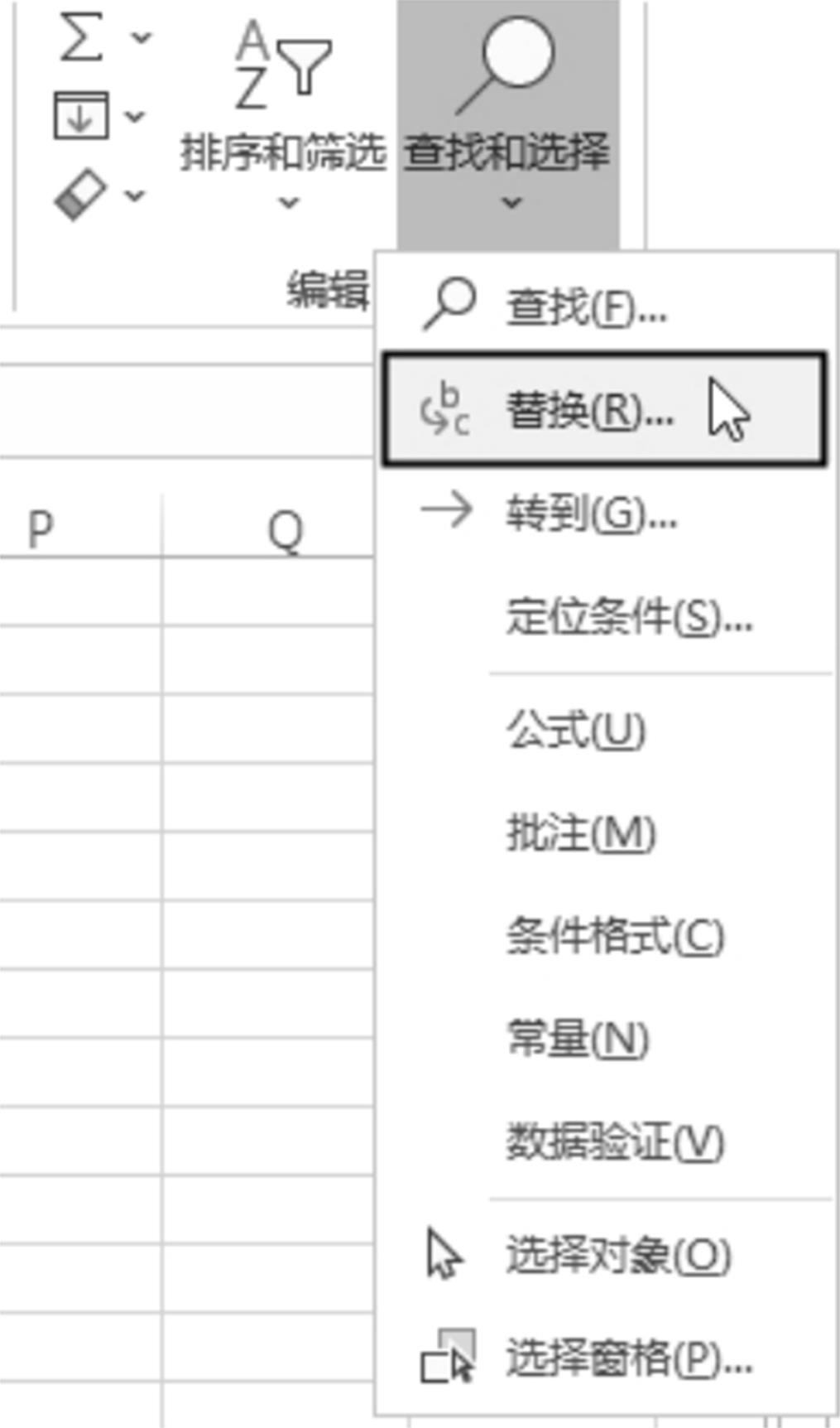 (1)选择A2:A11单元格区域,然后在功能区的“开始”选项卡中单击“查找和选择”按钮,在弹出的快捷菜单中选择“替换”命令,如图3-29所示。