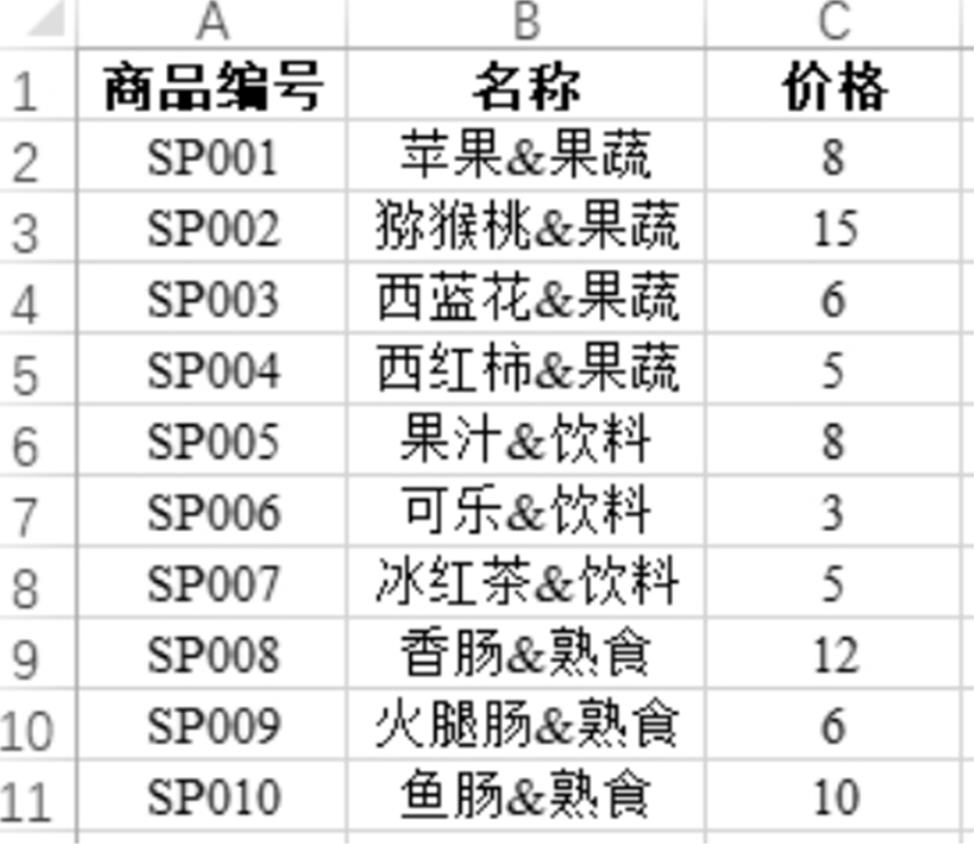 如图3-21所示,B列包含商品名称和类别名称,两者之间使用&号分隔,为了便于单独处理商品名称和类别名称,需要将商品名称和类别名称拆分到两列中。