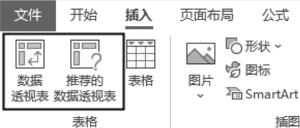“数据透视表”工具位于Excel功能区的“插入”选项卡中,如图1-7所示。使用该工具可以在不编写任何公式的情况下,快速完成大量数据的汇总工作。只需调整字段在数据透视表中的位置,即可快速创建出具有不同含义的分析报表。