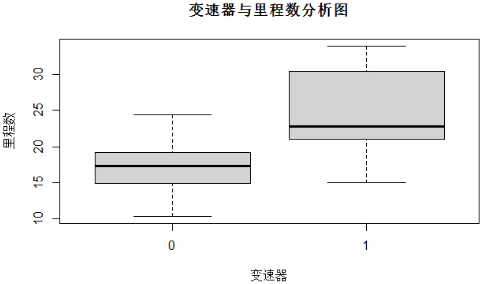 boxplot(mpg ~ am, data = mtcars, xlab = "变速器",