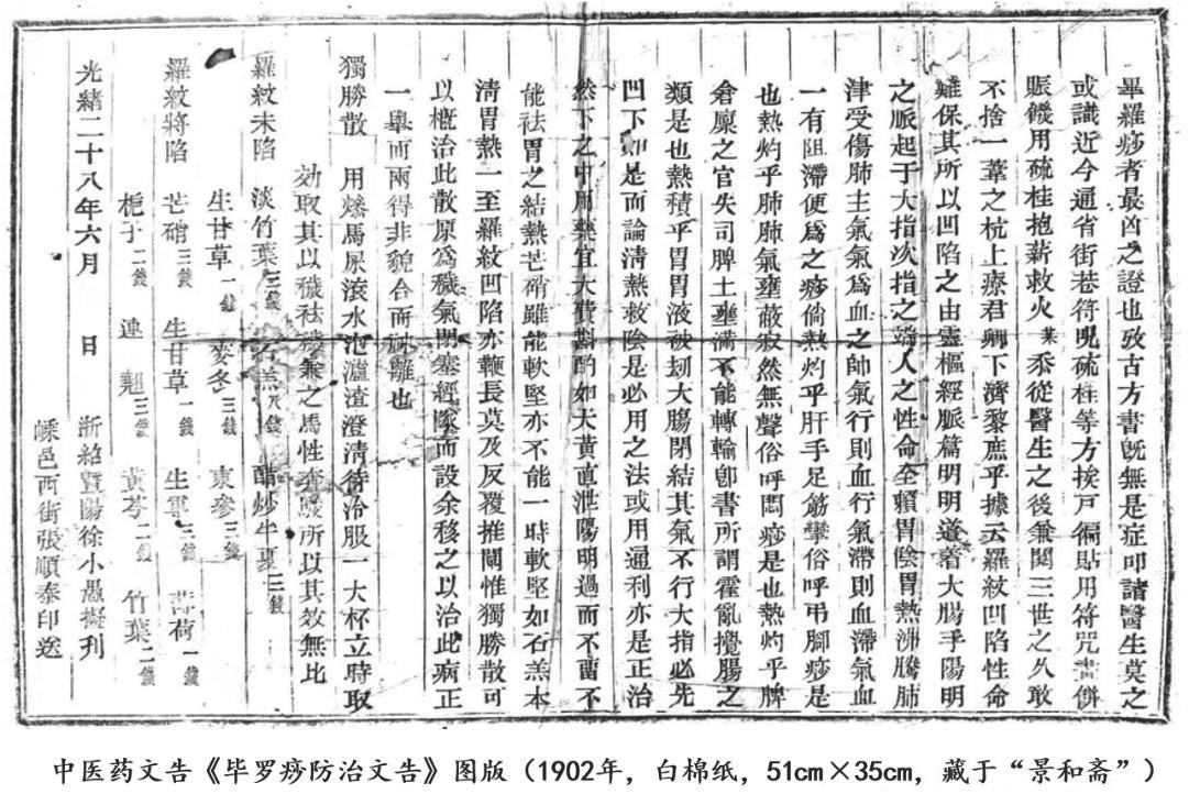 笔者以上述之线索于2007年首次发现了其清代时期的实物文本,并确立此类中医纸本刻印文书的名称为“中医药文告”