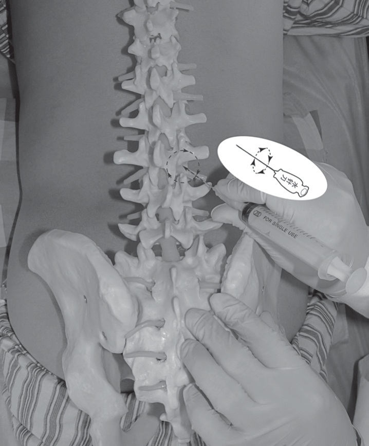 筋孔旋转松筋法传承于传统针法的白虎摇头针法。临床选用勺状水针刀,在颈椎或腰椎椎间孔外口、筋结孔、骶后孔等神经根出口处,沿神经根周围进行旋转分离(图1-16)。