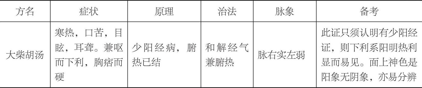 此和解少阳之经兼下阳明腑之热之法也。如小柴胡汤口苦,目眩,寒热往来,又兼呕而下利,胸下痞硬。呕利为胆胃二经热滞,痞硬为胆胃二经横结,下利为胃腑之热。于小柴胡汤去参、草之补中,加大黄、枳实以下胃热,加芍药以降胆经而舒胃经。一面和解少阳之经,一面下胃腑之热也。