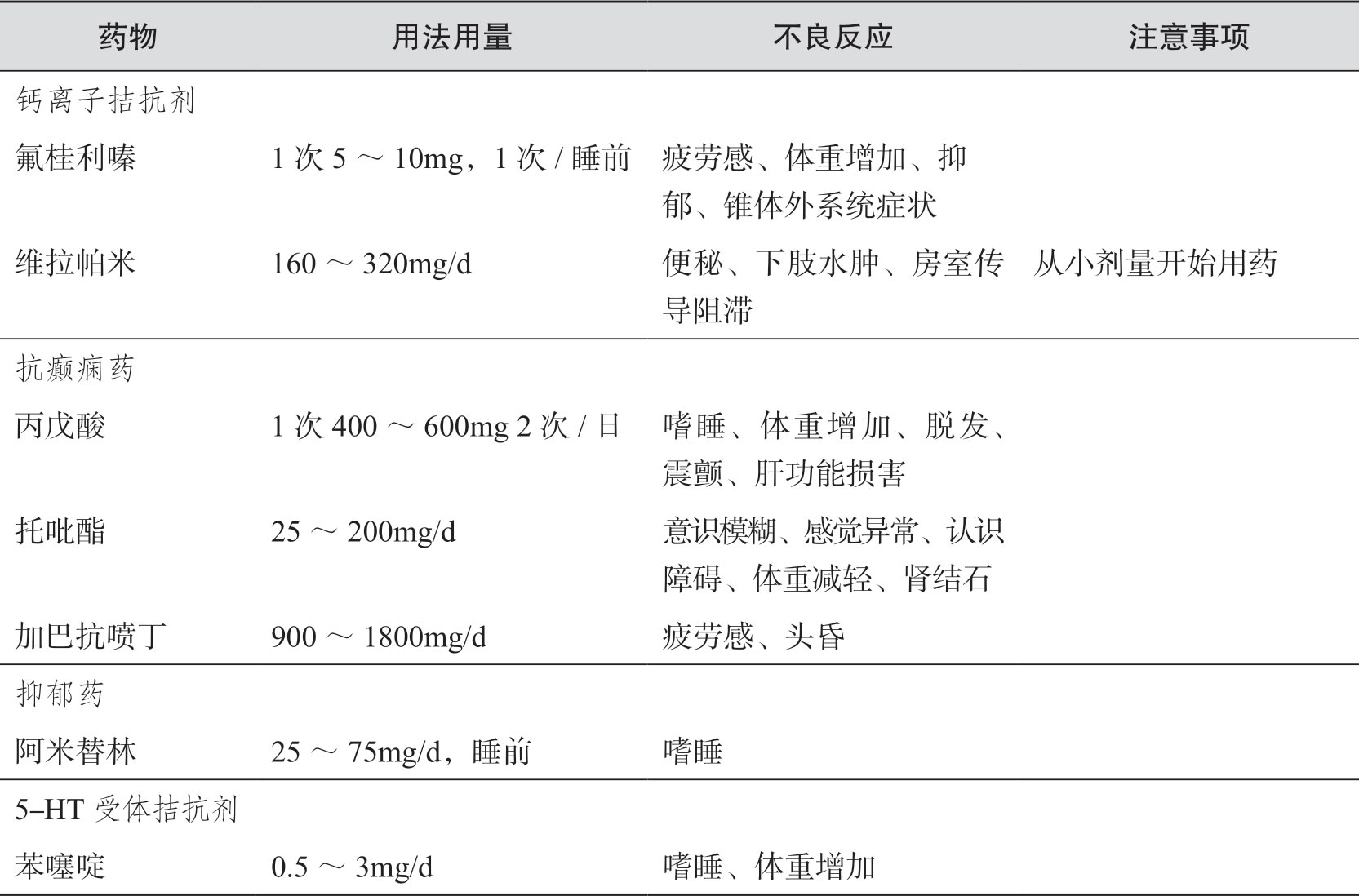 表3-3 偏头痛预防性治疗常用药物