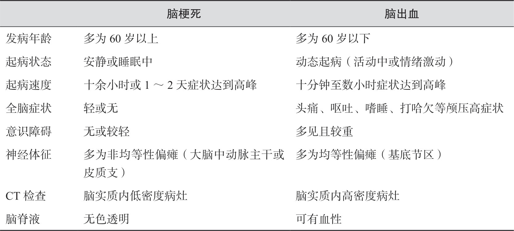 脑梗死有时与小量脑出血的临床表现相似,CT检查发现出血灶可明确诊断(表1-1)。