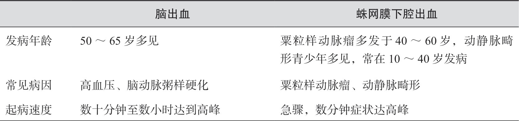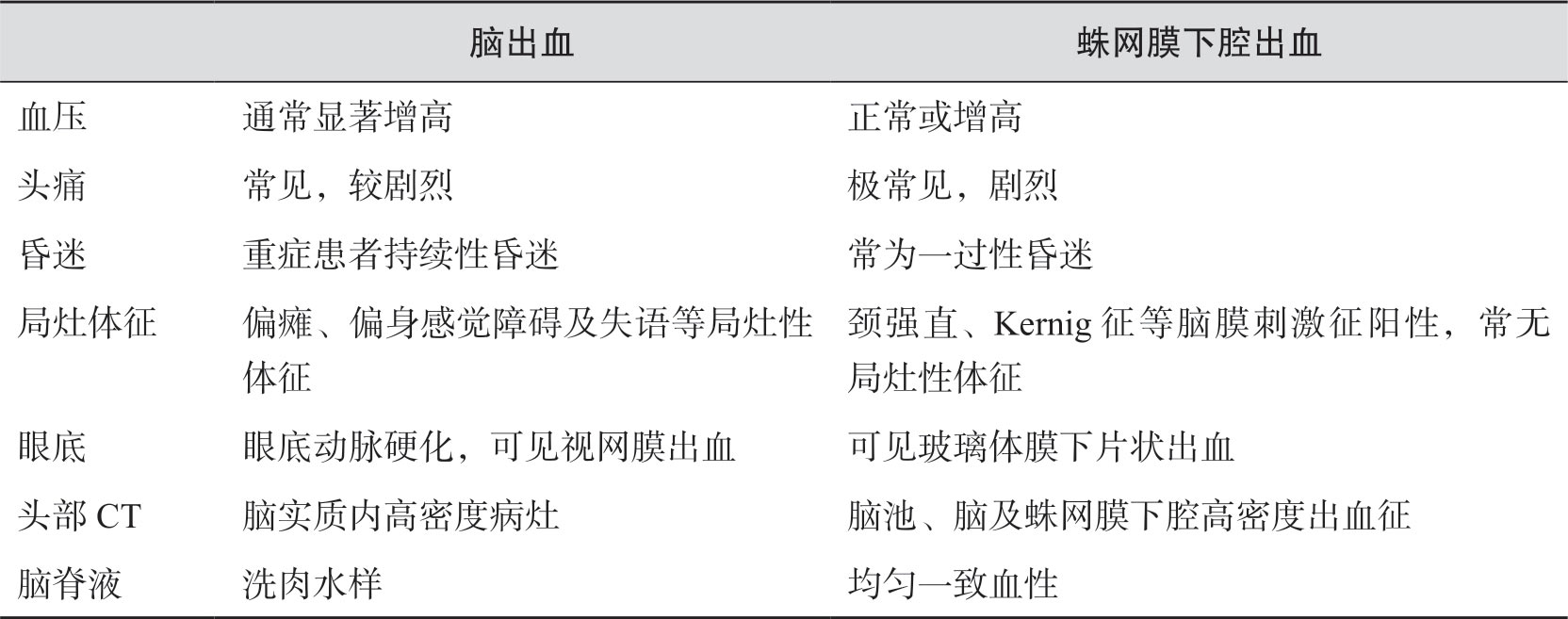 表1-2 脑出血与蛛网膜下腔出血的鉴别要点