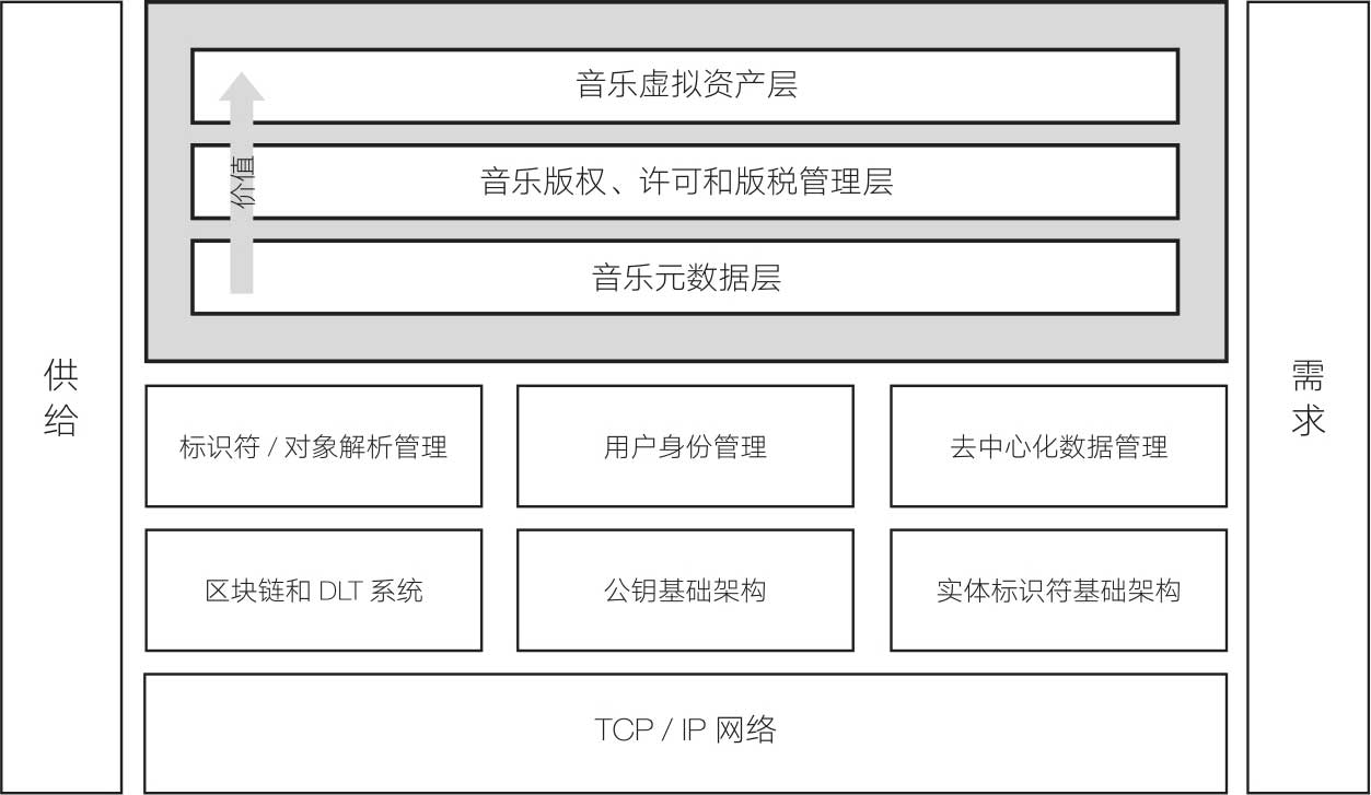 整个生态系统的第三层是音乐虚拟资产层,该层允许将音乐作品和音乐权利作为数字代币意义上的虚拟资产予以确认 47 。