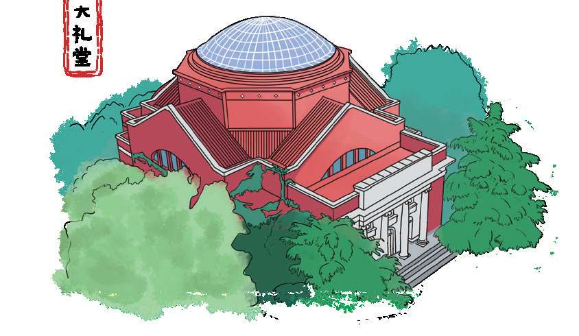 大礼堂与老图书馆、西体育馆、科学馆并称“四大建筑”,是清华“最有光荣历史的建筑物之一”。这座建筑采用天圆地方的造型设计,气势宏伟又不失庄重。