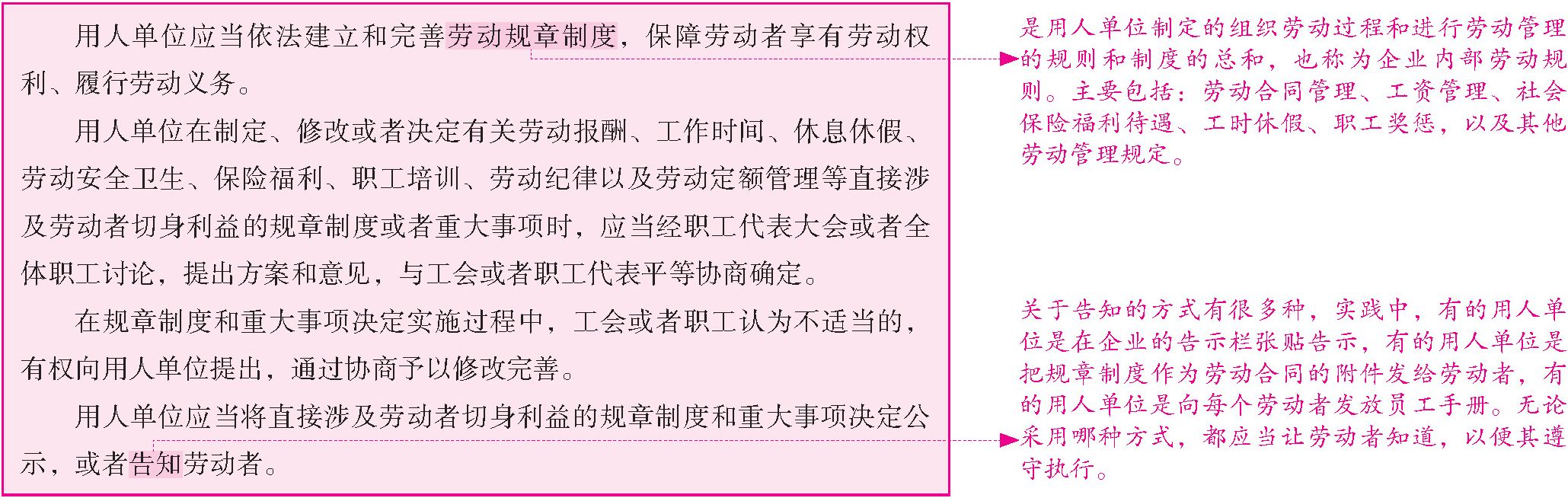 用人单位制定规章制度,要严格执行国家法律、法规的规定,保障劳动者的劳动权利,督促劳动者履行劳动义务。制定规章制度应当体现权利与义务一致、奖励与惩罚结合,不得违反法律、法规的规定。否则,就会受到法律的制裁。用人单位直接涉及劳动者切身利益的规章制度违反法律、法规规定的,由劳动行政部门责令改正,给予警告;给劳动者造成损害的,应当承担赔偿责任。