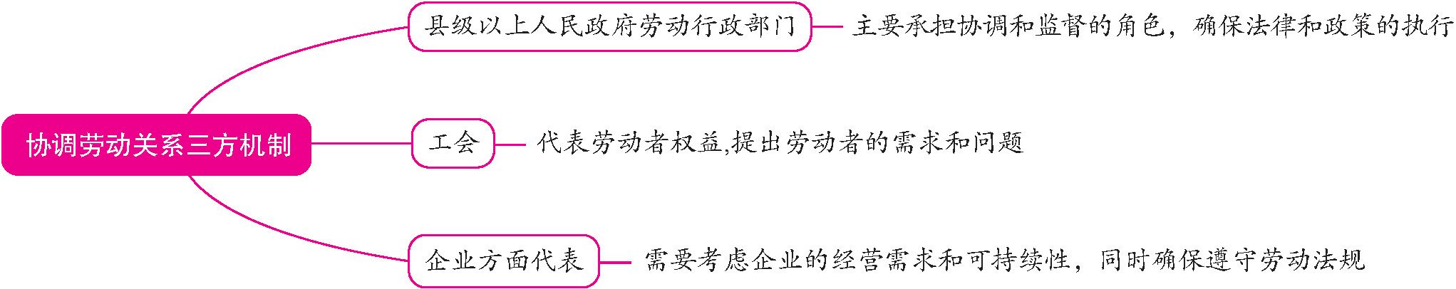 该机制是指在劳动规范制定、劳动关系调整、劳动争议处理等方面,由政府劳动行政部门、工会和用人单位三方代表进行协商对话,旨在消除误解,解决或减弱有关争议,增加达成协议的机会,共同协调劳动关系。