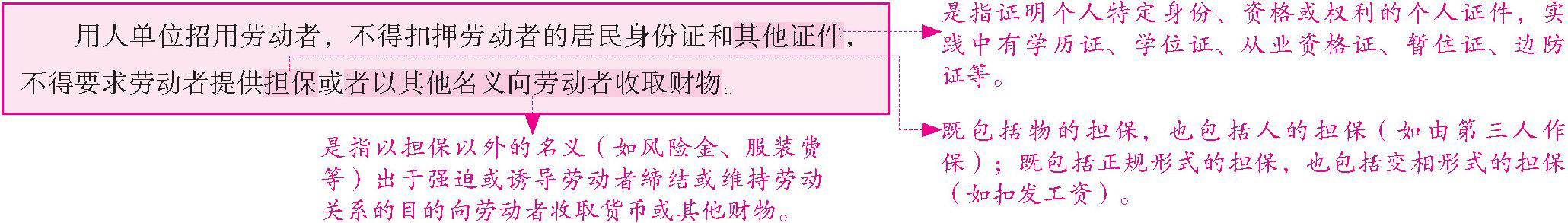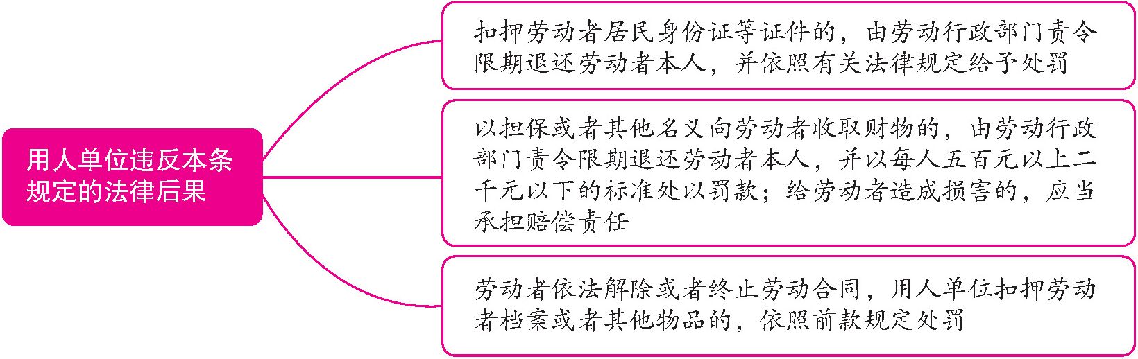 用人单位扣押劳动者身份证等证件或者要求其提供担保的,《劳动合同法》第八十四条规定了用人单位的法律责任。