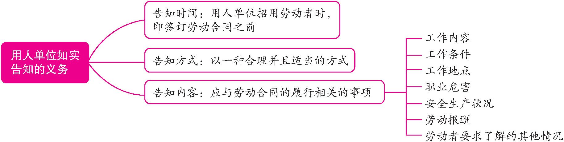 关于用人单位如实告知的义务,告知是一项义务,用人单位在招工时,必须将本条列举的、与劳动合同履行有关的内容写在招工简章上,也可以主动告知劳动者有关情况。