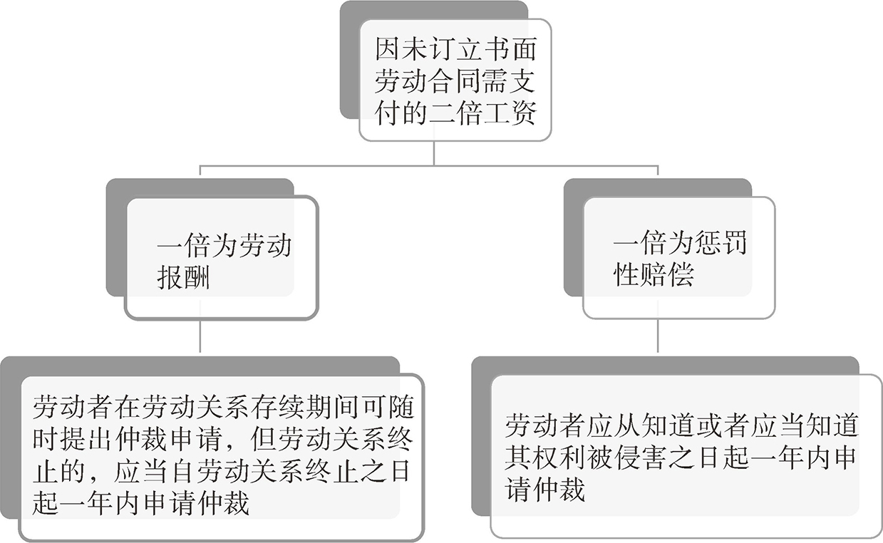 图2-2 因未订立书面劳动合同需支付的二倍工资构成