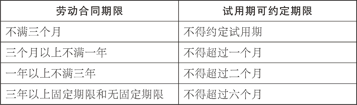 根据《劳动合同法》第十九条的规定,试用期不得随意约定,试用期可约定期限的长短与劳动合同期限的长短有关,但即使劳动合同期限再长,试用期可约定期限最长也不得超过六个月。劳动合同中的试用期可约定的期限详见表2-1。
