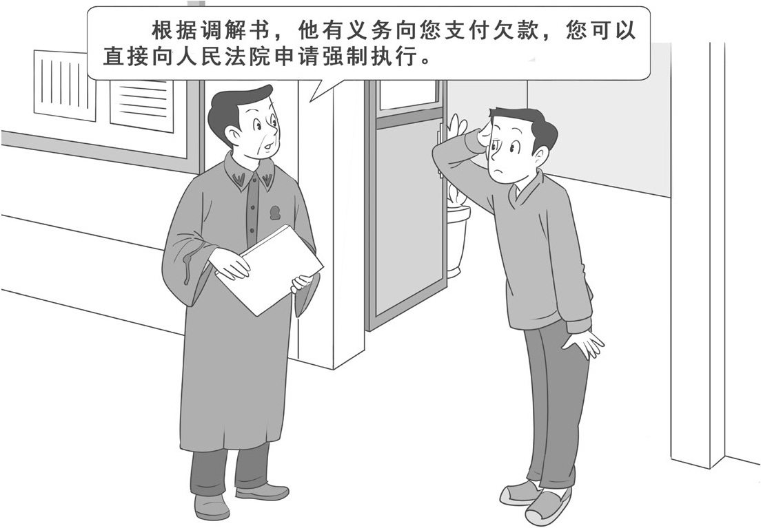 调解书和其他应当由人民法院执行的法律文书,当事人必须履行。一方拒绝履行的,对方当事人可以向人民法院申请执行。