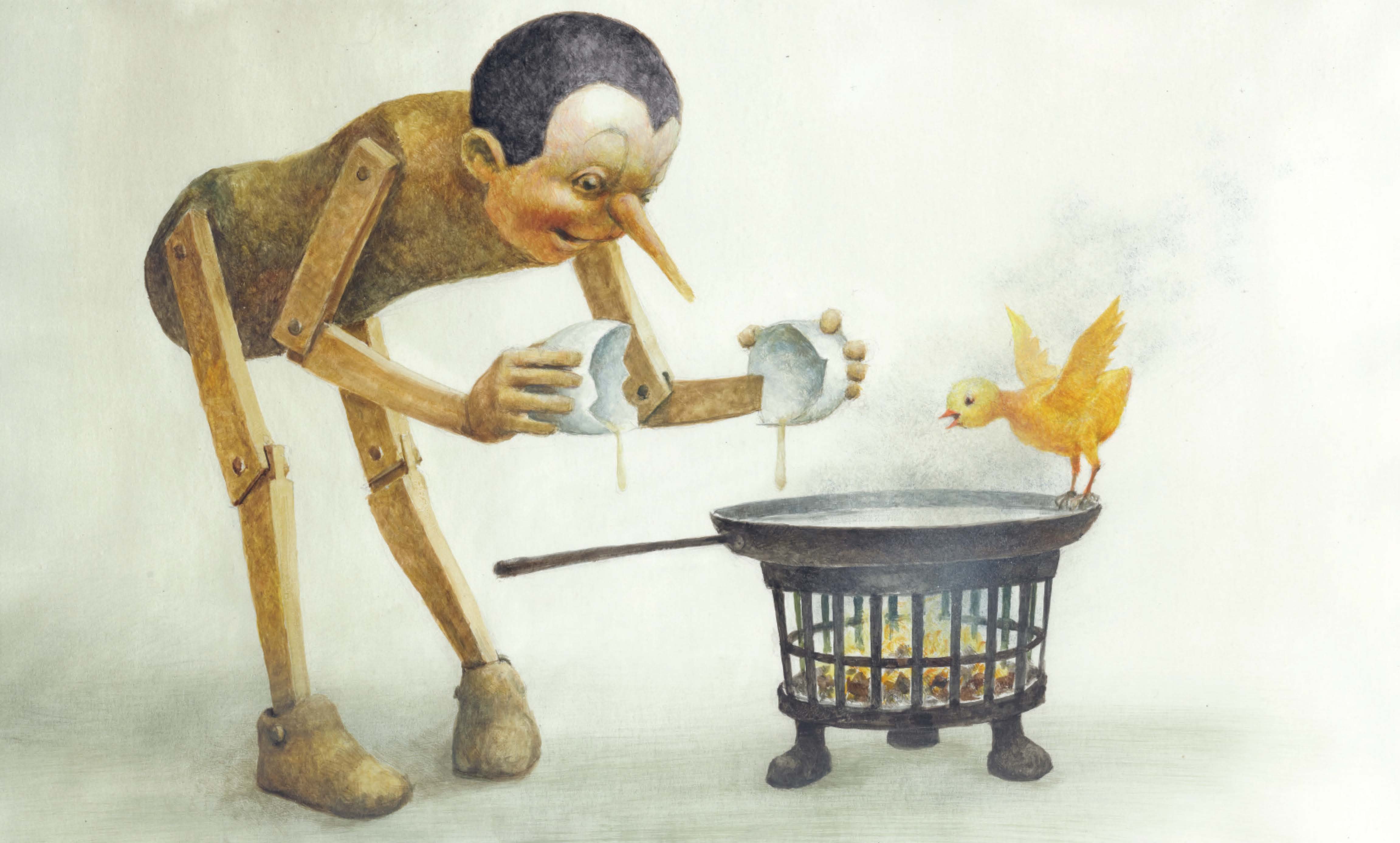 “匹诺曹先生,太感谢您了。您让我省了力气,不用自己来啄破蛋壳了!再见,祝您好运,并向您的家人致以热情的问候!”