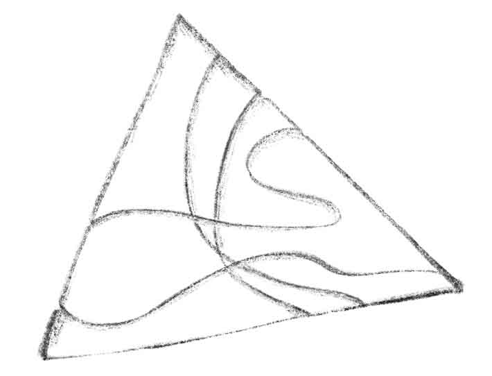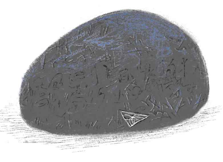 图案是个三角形,里面画着几条交错的曲线,和上面的象形文字的风格不同,更像某种有特殊意义的符号。
