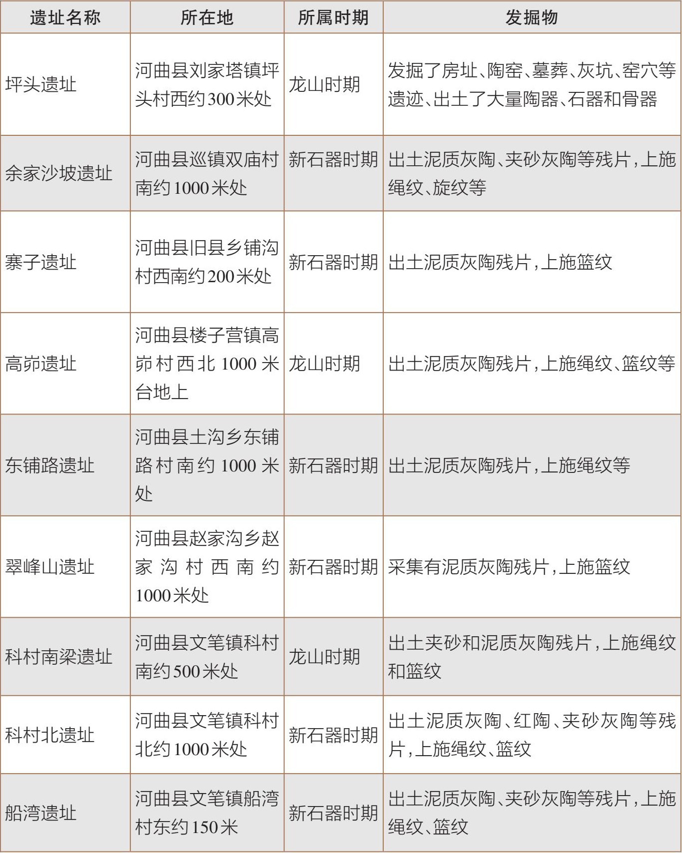 河曲地域内史前文化遗址