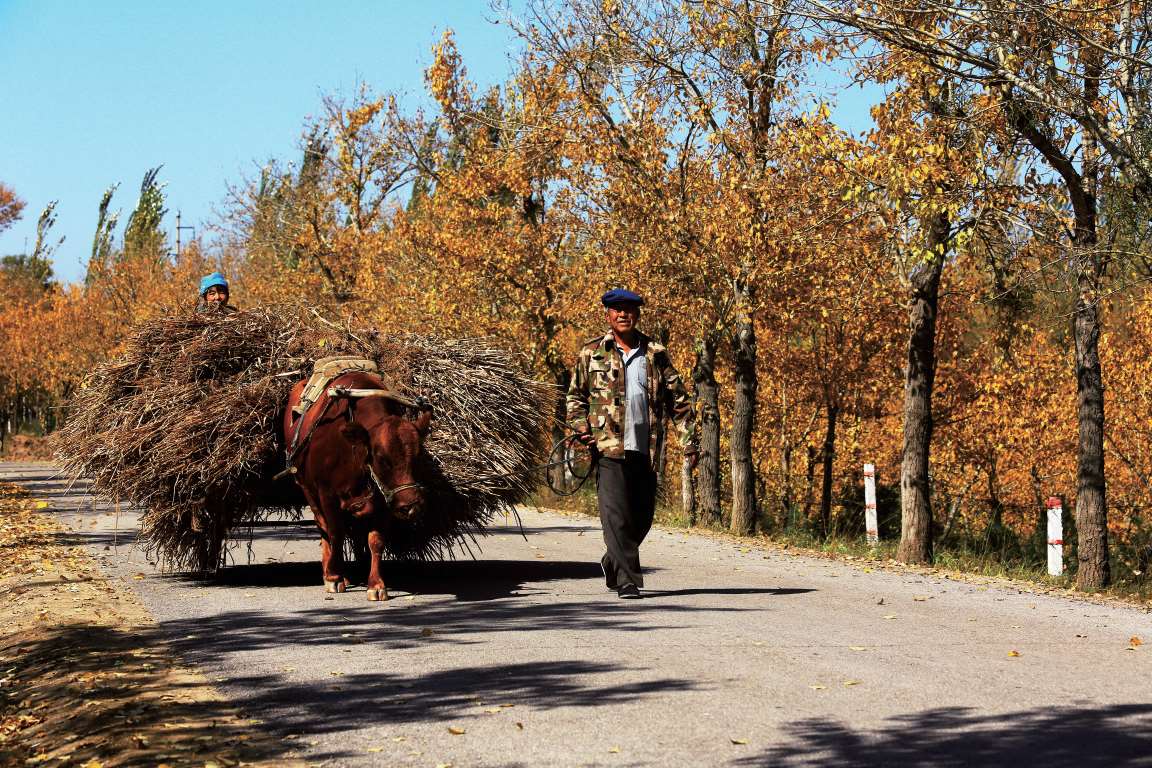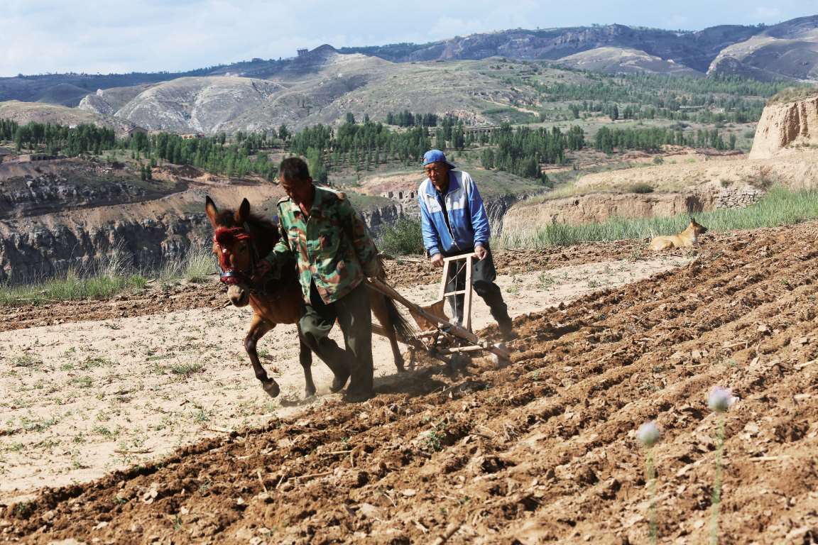 河曲农民耕地的场景