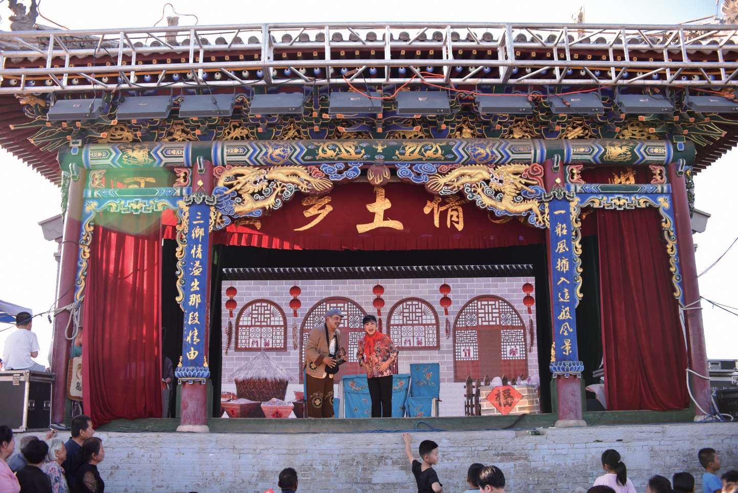河曲七月十五的河灯会期间西口古渡广场的二人台演出