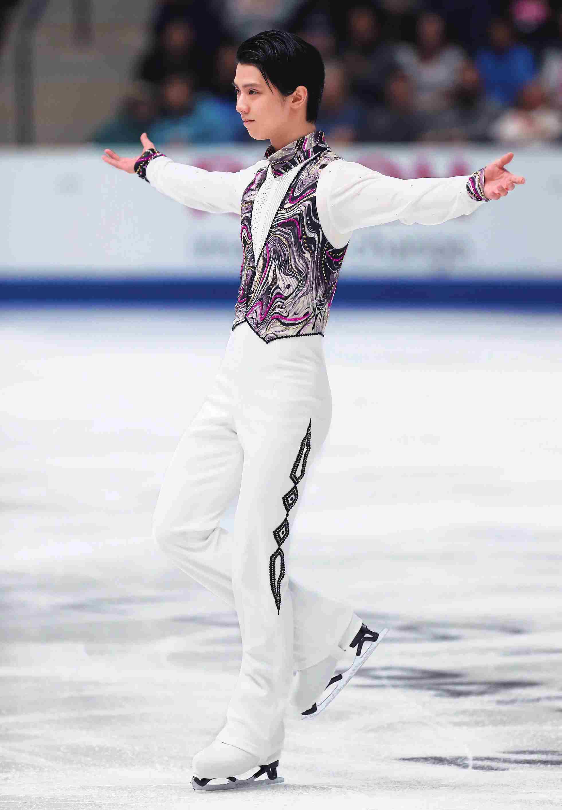 羽生稳定发挥,完成了开场的后外结环四周跳,随后轻松地跳出了后内结环四周跳,接着是行云流水般的旋转、步法和后内点冰三周跳。但是,在跳前天公开练习中失误过的后半段的后内结环四周跳时,羽生不幸摔倒。紧接着的单个后外点冰四周跳的落冰也不太理想。本来在三周半跳后面,他打算再接一个后外点冰两周跳,但临时改成后外点冰三周跳来补救。然而第二个三周半跳落冰还是有些混乱,虽然实现了联跳,但其中的后外结环跳被降级,后内结环三周跳也仅跳了两周。最后的勾手三周跳更是变成了一周跳,失误接二连三。
