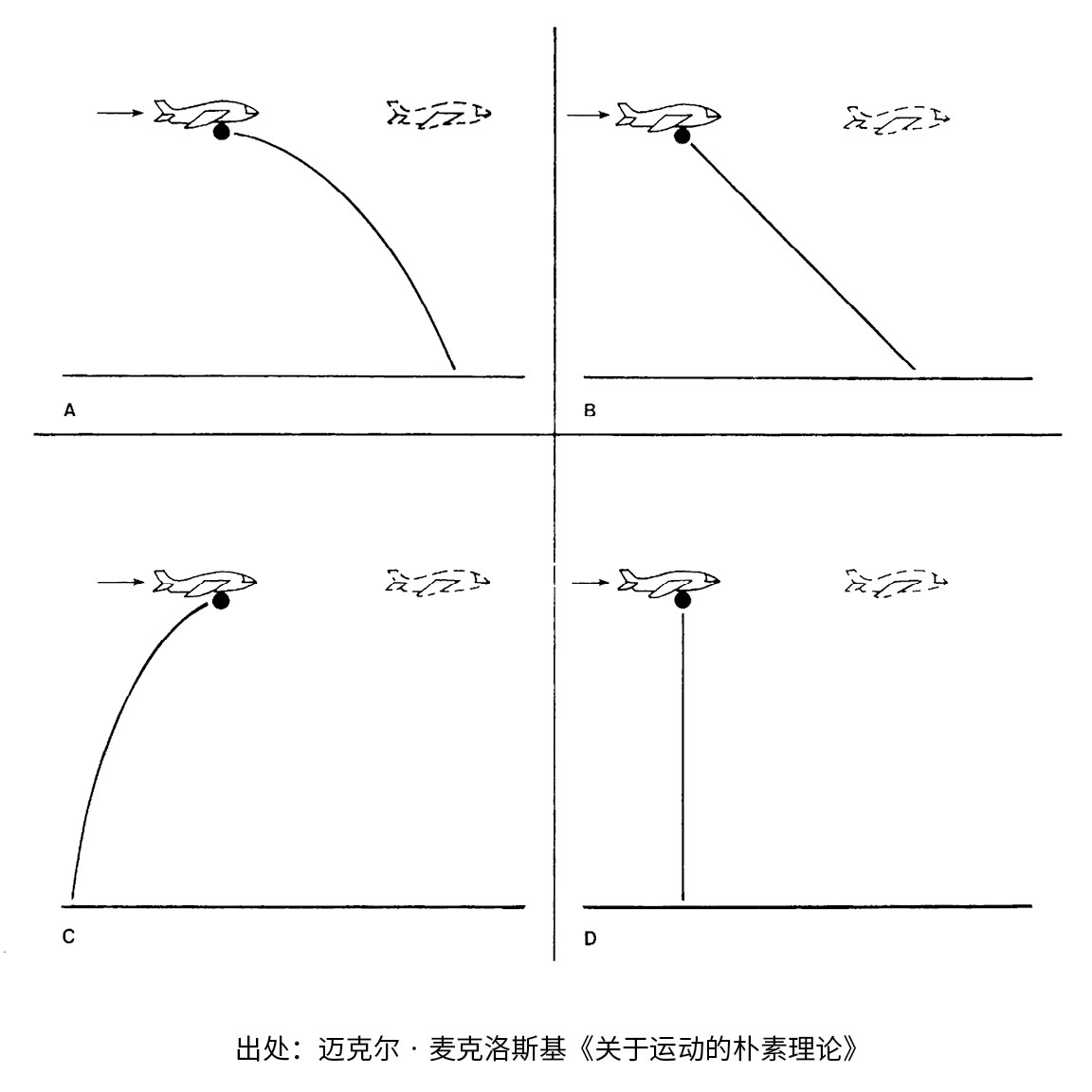 文殊: 没错!请仔细重新阅读问题—— 这个问题并不是问“坐在飞机上的人会看到球如何下落” ,而是问“保龄球下落的正确轨迹”,所以应该从外部视角来思考才对吧?
