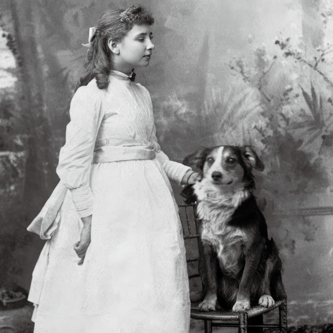 我的另一个伙伴是我家的狗——贝尔,她又老又懒,宁可在壁炉边睡大觉也不愿跟我嬉闹玩耍。我煞费苦心想教她手语,她总是一副呆头呆脑又心不在焉的样子。她有时会突然惊起,兴奋得浑身颤抖,之后又僵立不动,就像狗盯上了小鸟一样。我当时不知道贝尔为什么会有这样的举动,我只知道她不听我的话,这让我很恼火,我对她一顿拳打脚踢后便终止了我们的课程。贝尔通常会爬起来,伸一个懒腰,轻蔑地哼两下鼻子,走到壁炉对面再趴下。我自讨没趣,就出去找玛莎玩了。