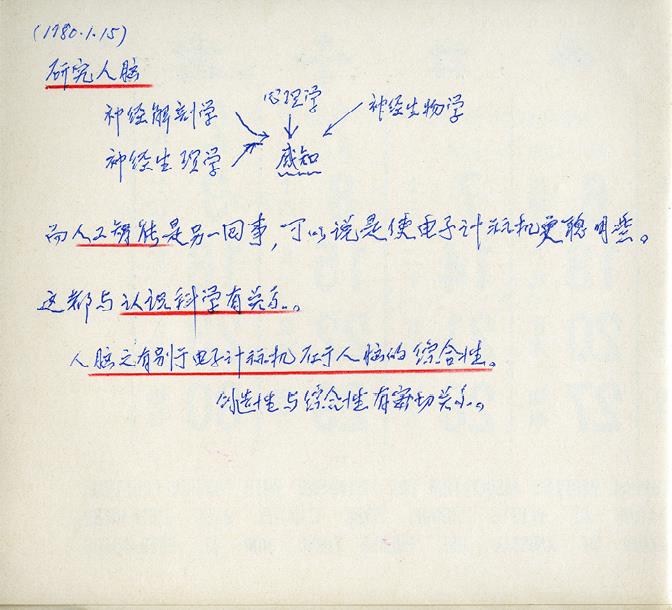 1979年至1980年钱学森研究人工智能时写下的札记
