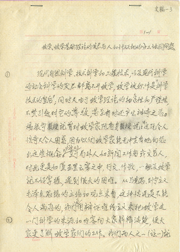 《数学、数学基础理论的发展与人和计算机的分工协同问题》手稿首页