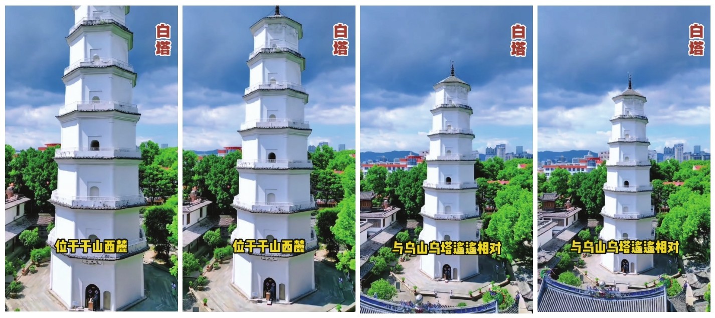 旋转镜头是指被摄对象呈现出旋转效果的镜头,常用于表现人物(或其他运动物体)的旋转动作、全角度展现宏伟的建筑或自然景观、表现特定的情绪和气氛等,可以增强画面的动感和视觉效果。需注意的是,旋转镜头的运动速度不能过快,否则容易给观众带来眩晕的视觉感受。图1-13所示的短视频画面采用了拉镜头和旋转镜头展现画面中的景物。