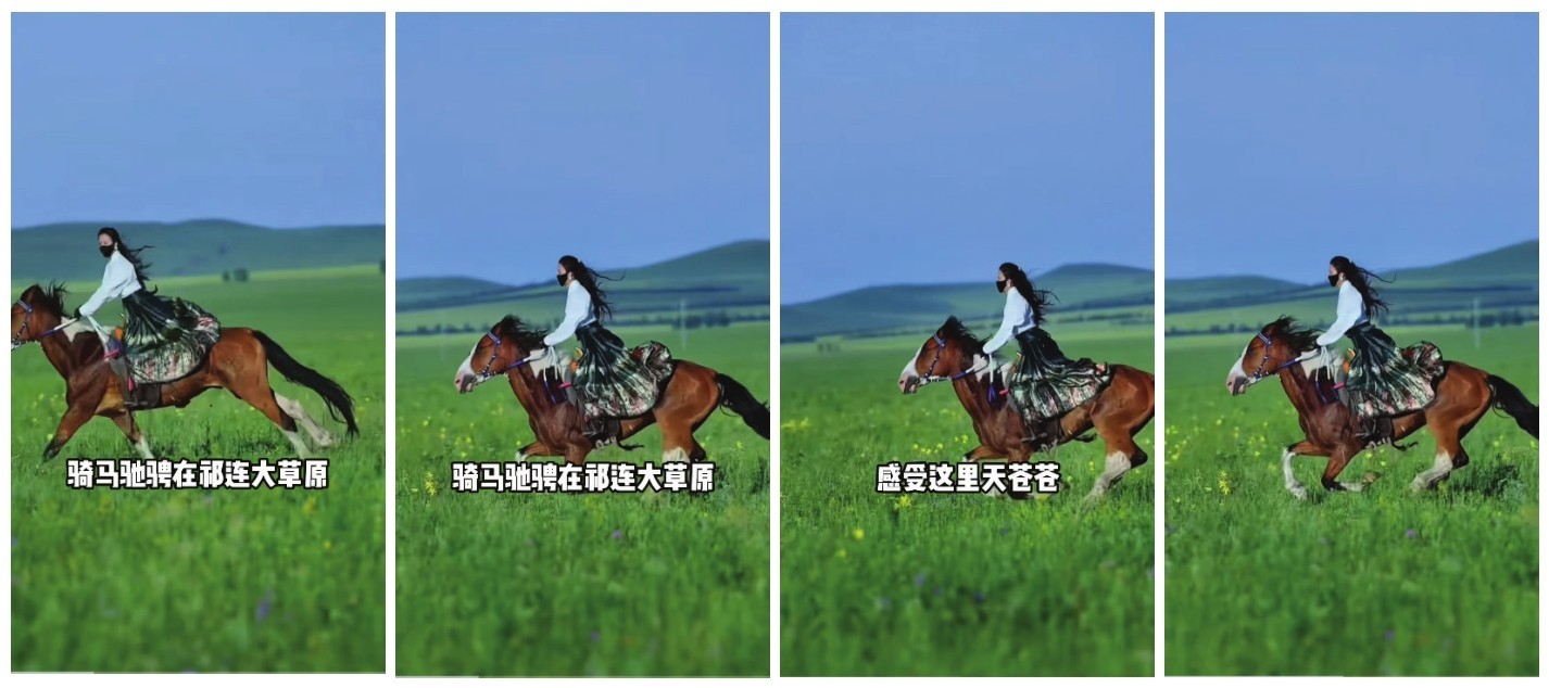 跟镜头是指摄像器材始终跟随被摄对象一起运动的镜头。不同于移镜头,虽然跟镜头的运动方向是不规则的,但是要一直把被摄对象保持在视频画面中位置相对稳定的状态。跟镜头既能突出被摄对象,又能表现其运动方向、速度、体态,及其与环境的关系,因此在短视频中非常常见。另外,根据拍摄方向的不同,跟镜头通常可分为前跟、后跟和侧跟3种类型。图1-12所示的短视频画面采用了侧跟镜头。