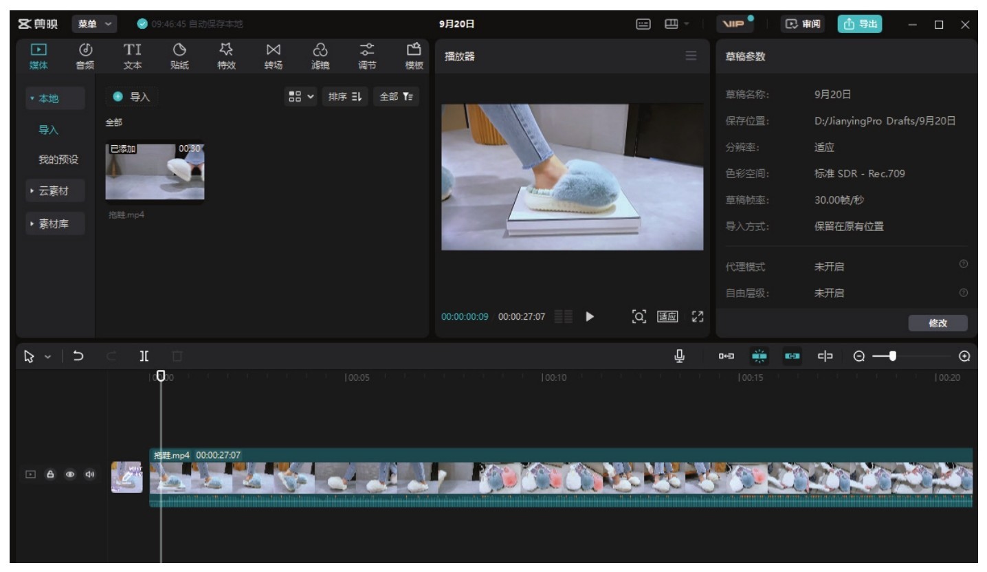 快剪辑有专业模式和快速模式两种,专业模式适合精细剪辑,快速模式便于快速完成制作。用户可以根据自己的需求进行选择,实现更加灵活多样的短视频创作。图1-20所示为快剪辑专业模式操作界面。